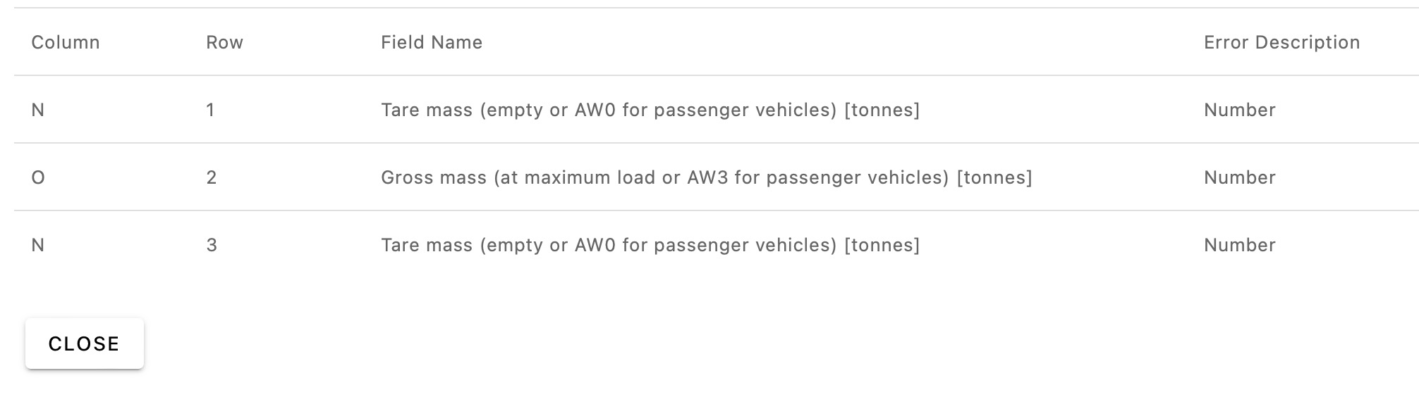 - Ensure that the data is of the correct format (e.g.: Tare expressed in number and not text)